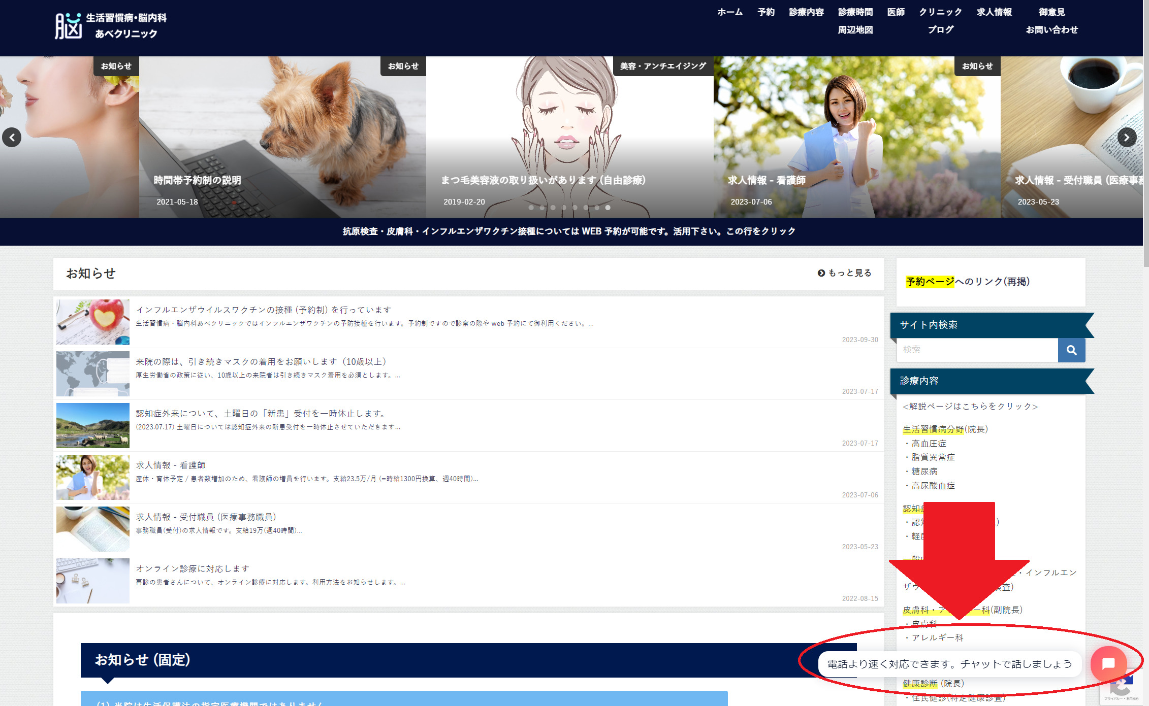 かろうじてこれはチャットの形式をとっていますが、御案内する「当院ホームページの」チャットではありません。